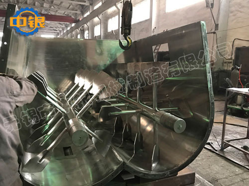 該機在w形的混合室內裝有一對以相反方向旋轉的軸,在每個軸上安裝具